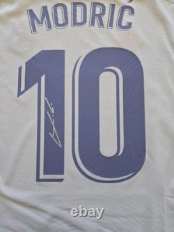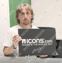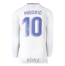 Luca Modric Signed Real Madrid 2021-22 Long Sleeve Home Jersey Icons Authentic COA #0000078558. Images 6-10 are of the actual jersey and the COA. This Jersey was personally signed by Luka Modric during a private signing session in Madrid on May 19th, 2022. The shirt comes with an official icons Certificate of Authenticity, which serves as your proof that the signature is 100% genuine.