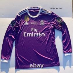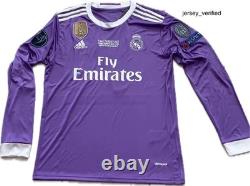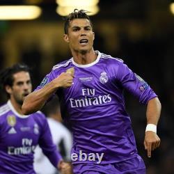 Relive the glory days of Cristiano Ronaldo with this iconic Real Madrid 2016/2017 away long-sleeve retro jersey. Dressed in the elegant deep purple that marked one of the club's most historic seasons, this shirt pays tribute to the year Los Blancos conquered Europe, lifting their 12th UEFA Champions League title. Season: 2016/17 - Champions League & La Liga winning campaign. Style: Long sleeves for a classic, vintage feel.