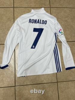 Adidas Real Madrid liga Ronaldo Player issue Adizero long sleeve jersey Size 8.